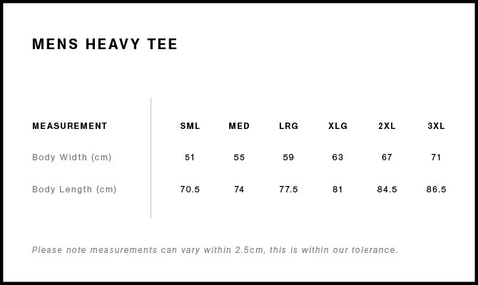 Mens & Womens Heavy Tee Details: